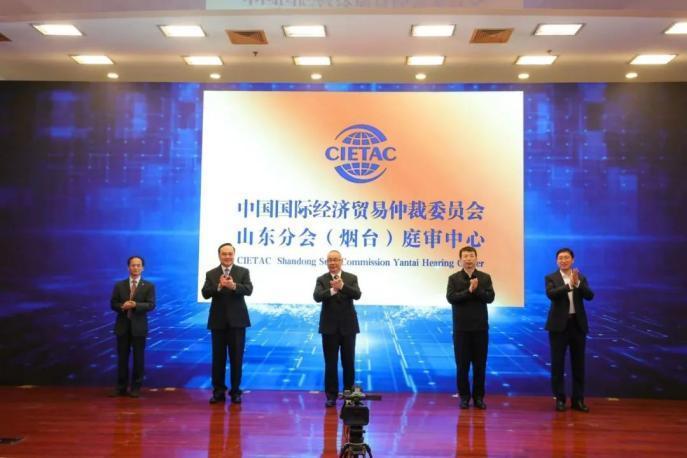 [與會(huì)嘉賓共同啟動(dòng)貿(mào)仲山東分會(huì)(煙臺(tái))庭審中心]