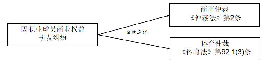 (六)因職業(yè)球員商業(yè)權益引發(fā)糾紛,由當事人自愿選擇商事仲裁、體育仲裁