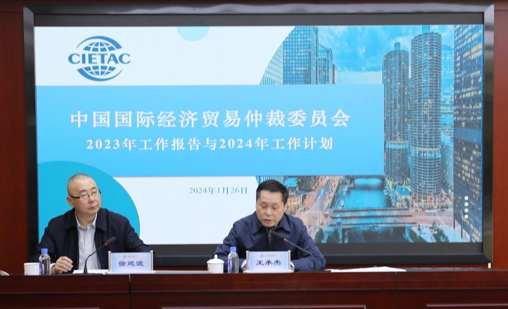2024年1月26日下午,貿(mào)仲委2023年度干部職工總結(jié)大會在北京召開,貿(mào)仲委全體領(lǐng)導(dǎo)班子成員、總分會干部職工出席會議。會議全面回顧2023年工作成果,深刻分析當(dāng)前形勢,謀劃部署2024年工作任務(wù)。貿(mào)仲委副主任兼秘書長王承杰作2023年工作總結(jié),貿(mào)仲委黨委書記徐延波主持會議。