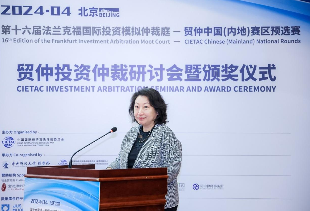 貿(mào)仲副主任兼秘書(shū)長(zhǎng)王承杰、香港特別行政區(qū)政府律政司司長(zhǎng)林定國(guó)、聯(lián)合國(guó)貿(mào)法會(huì)亞太區(qū)域中心主任Athita Komindr以及中央財(cái)經(jīng)大學(xué)副校長(zhǎng)栗崢教授致辭并頒獎(jiǎng)。