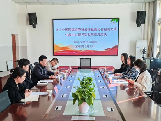 近日,中國國際經(jīng)濟貿(mào)易仲裁委員會絲綢之路仲裁中心(簡稱“貿(mào)仲絲路中心”)副秘書長蔣紅梅一行到訪喀什大學,與喀什大學法政學院黨委副書記、院長楊陶,銀齡教授李剛,法學系系主任王遠朝等座談交流。貿(mào)仲仲裁員、西北政法大學副教授白艷,法政學院法學系系主任王遠朝、教師張炯、朱佳等出席座談。