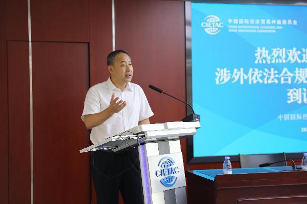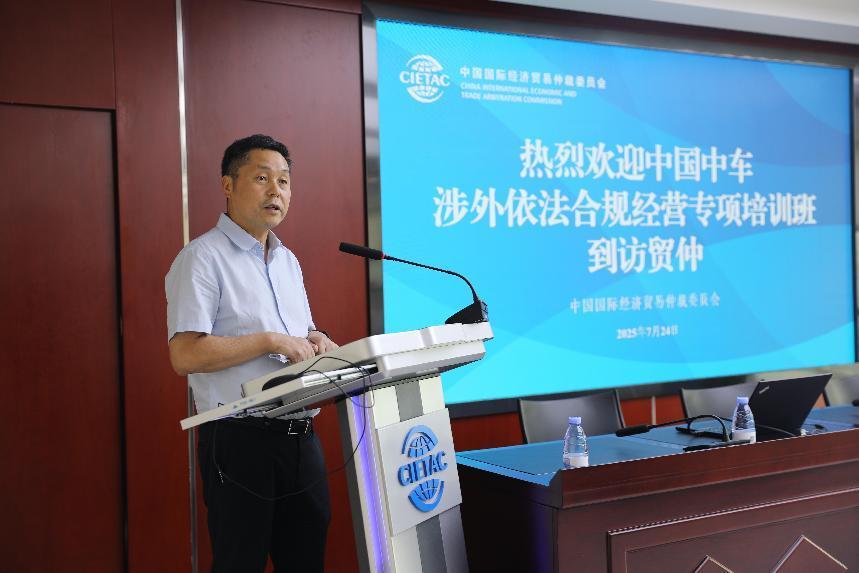 7月24日,中國中車集團有限公司(簡稱“中車集團”)涉外依法合規(guī)經(jīng)營專項培訓(xùn)班學(xué)員到訪中國國際經(jīng)濟貿(mào)易仲裁委員會(簡稱“貿(mào)仲”)并開展交流學(xué)習(xí)。貿(mào)仲副主任兼秘書長王承杰,中國人民大學(xué)法學(xué)院副院長丁曉東,中車集團法律部部長張世東出席活動并先后致辭。
