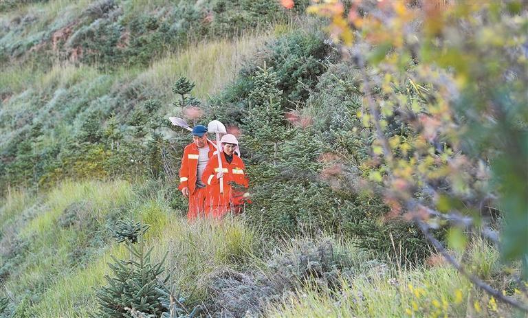 “以前哪能看到這么多植物?”西山林場尖哇嘴管護(hù)員魯生錄和老伴兒李四讓卓瑪扛著鐵鍬,沿著管護(hù)區(qū)的小道巡護(hù),望著遠(yuǎn)處連綿的山坡,眼里滿是回憶:“聽老一輩綠化人說,剛開始種樹的時候,山上盡是光禿禿的土坡,風(fēng)一吹就揚沙,能活下來的只有幾棵耐旱的老楊樹。后來為了讓林子‘活’起來,大家想盡了辦法——從外地引種云杉、沙棘這些耐高原氣候的樹種,先在育苗區(qū)試種,觀察它們的長勢,再慢慢摸索不同樹種‘搭伴生長’的規(guī)律。你看現(xiàn)在,喬木能擋風(fēng)固土,灌木能涵養(yǎng)水分,各種鳥類都來這兒筑巢了?!?/p>