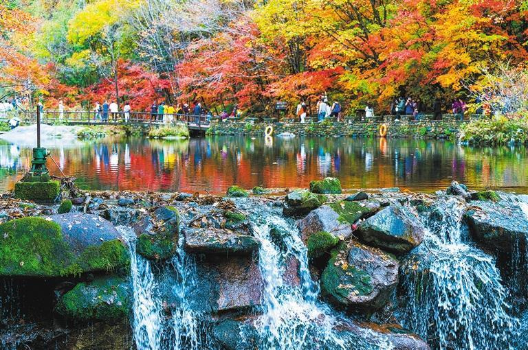 10月11日,游客在遼寧省本溪市大石湖景區(qū)觀賞紅楓。 何華文攝(中經(jīng)視覺(jué))