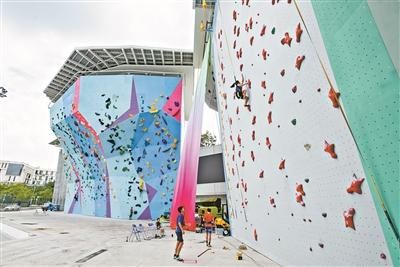 廣州大學(xué)城體育中心攀巖場(chǎng)是國(guó)內(nèi)首批零碳體育場(chǎng)館改造項(xiàng)目。記者 莊小龍攝