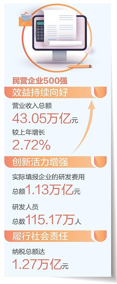 面對外部壓力加大、內(nèi)部困難增多的復(fù)雜嚴(yán)峻形勢,民營企業(yè)500強(qiáng)堅(jiān)定不移走高質(zhì)量發(fā)展之路,專心致志做強(qiáng)做優(yōu)做大企業(yè),整體保持穩(wěn)中有進(jìn)、穩(wěn)中向好的態(tài)勢,企業(yè)效益和核心競爭力進(jìn)一步增強(qiáng)。