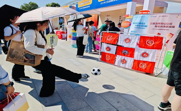江蘇分公司在金融教育嘉年華中推出“九宮格踢足球+消保問(wèn)答”環(huán)節(jié),市民邊玩邊學(xué),在運(yùn)動(dòng)中輕松掌握防范技巧。