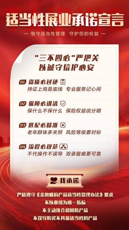 圖為太平人壽業(yè)務(wù)人員“適當(dāng)性展業(yè)承諾宣言”海報(bào)