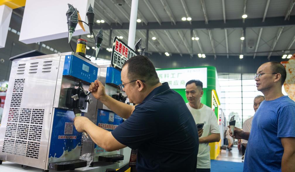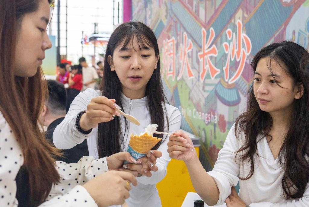 9月19日,在長沙國際會(huì)展中心,觀眾在品嘗冰淇淋。新華社記者 陳思汗 攝