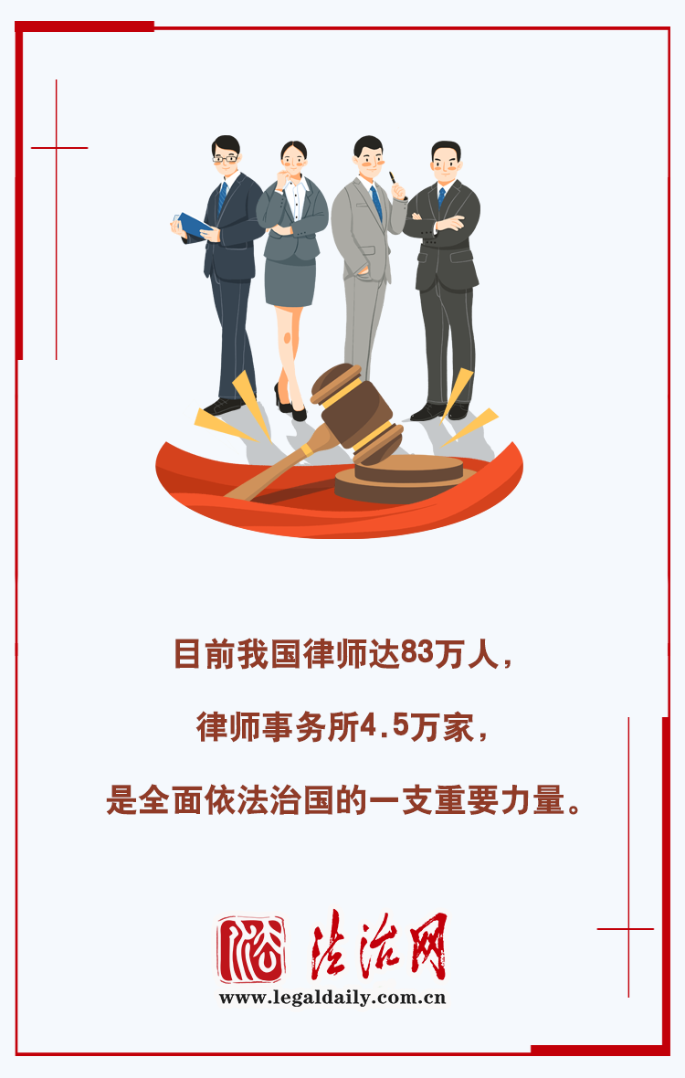 目前,我國律師達(dá)83萬人,律師事務(wù)所4.5萬家,是全面依法治國的一支重要力量?!笆奈濉逼陂g,司法部在引導(dǎo)好、管理好、服務(wù)好律師隊伍上持續(xù)采取務(wù)實措施,團結(jié)凝聚廣大律師充分發(fā)揮職能作用。律師工作哪些亮點不容錯過?一圖解鎖!