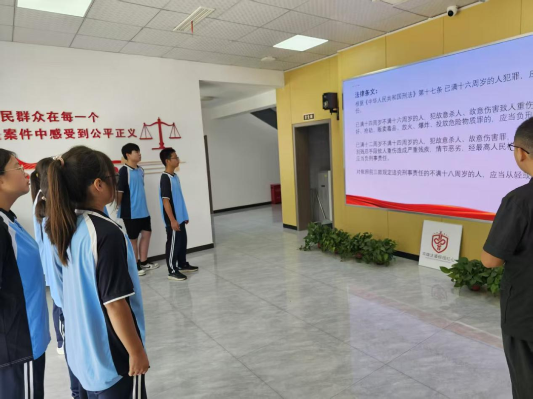 在法官助理肖陽的指導(dǎo)下,學(xué)生們分別扮演審判長、人民陪審員、書記員、原告、被告等角色,通過“沉浸式”模擬庭審,讓法律條文變成了看得見、摸得著的體驗(yàn),讓學(xué)生們深刻感受到法庭的莊嚴(yán)與神圣。模擬法庭結(jié)束后,法庭干警與學(xué)生們進(jìn)行座談,向?qū)W生們發(fā)放了關(guān)愛未成年人提示函。