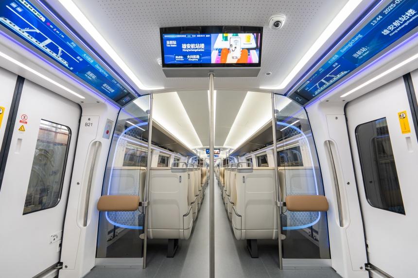 據(jù)介紹,京雄快線列車突破了速度高、站間距大、貫通運(yùn)營(yíng)、4/8混跑等重大挑戰(zhàn),應(yīng)用自采信、自學(xué)習(xí)、自決策的智慧控制技術(shù),行車故障降低95%,實(shí)現(xiàn)電氣故障不停車,大幅提升運(yùn)行效率。同時(shí)列車搭載多項(xiàng)智能服務(wù)系統(tǒng),如實(shí)時(shí)顯示車廂擁擠度、快慢車停站、動(dòng)態(tài)時(shí)刻表等信息,助力乘客高效出行,提升乘車體驗(yàn)。