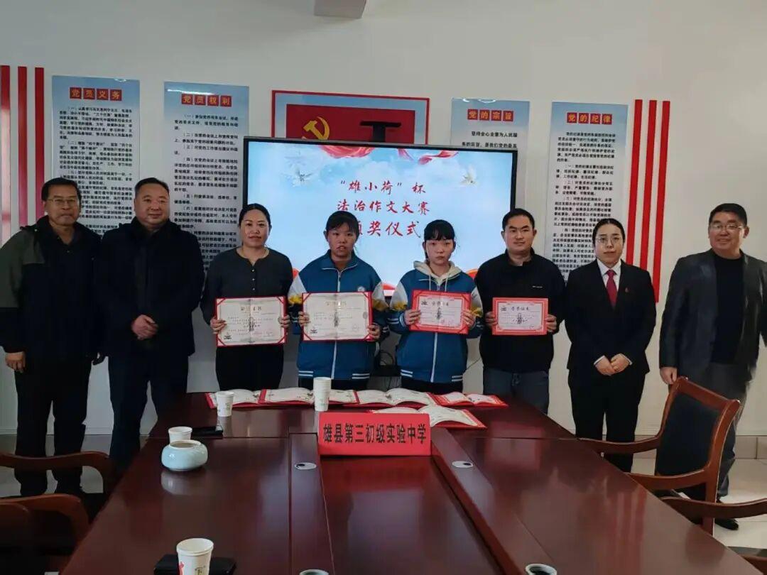 法治的陽光,照耀青春成長之路;文字的力量,承載少年法治夢想。10月24日,隨著“雄小荷”杯法治作文大賽評比結(jié)果的出爐,賽事組委會帶著榮譽(yù)與成果,相繼走進(jìn)雄縣第二、第三初級實驗中學(xué)、雄縣第三高級中學(xué)初中部,為獲獎師生頒獎。