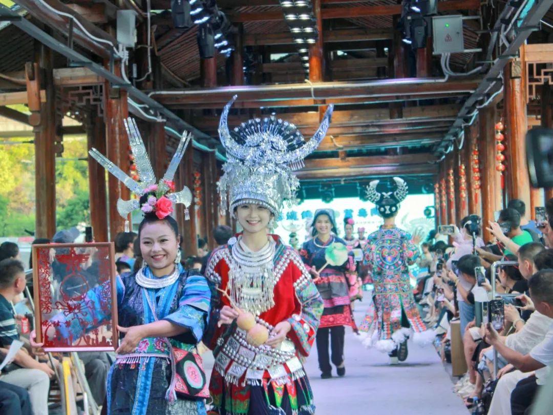 活動(dòng)現(xiàn)場,當(dāng)?shù)貗D女、青少年、志愿者和民間藝人化身禁毒宣傳模特,身著各自傳統(tǒng)的少數(shù)民族服飾,手舉禁毒非遺作品,踏著鏗鏘有力的鼓點(diǎn)與悠揚(yáng)的婉轉(zhuǎn)旋律,自信從容地行走在充滿鄉(xiāng)土氣息的“村T”舞臺上。