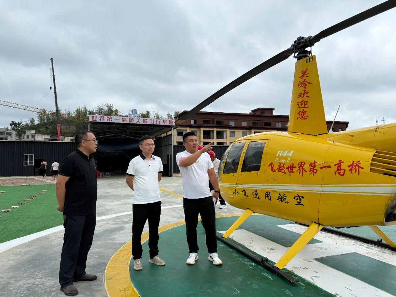 隨著花江峽谷大橋通車(chē)進(jìn)入倒計(jì)時(shí),貴州省安順市關(guān)嶺自治縣依托“世界第一橋”的獨(dú)特IP,同步布局直升機(jī)觀光與飛艇觀光,以“橋+空”模式打造橋旅融合新標(biāo)桿。為服務(wù)保障航空產(chǎn)業(yè)城建設(shè)起步穩(wěn)、發(fā)展實(shí),近日,關(guān)嶺自治縣人民檢察院黨組書(shū)記、檢察長(zhǎng)陳治與黨組副書(shū)記、常務(wù)副檢察長(zhǎng)程端貴到世界第一高橋關(guān)嶺飛行基地和飛艇基地進(jìn)行走訪(fǎng),將檢察職能與地方發(fā)展需求深度對(duì)接,為“空中觀光+橋梁旅游”的新業(yè)態(tài)筑牢法治屏障。