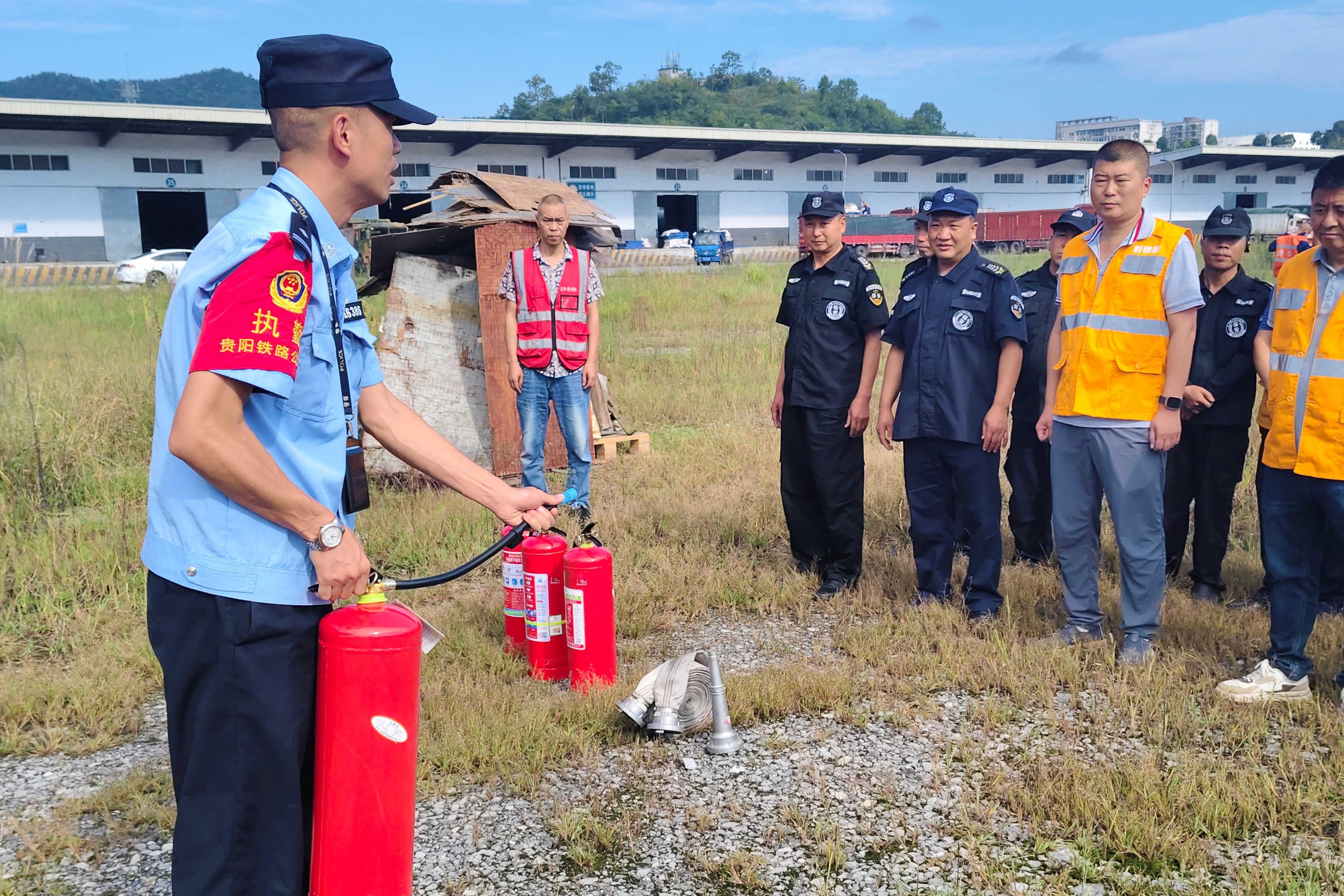 圖為遵義站派出所組織鐵路貨場職工開展消防安全培訓。