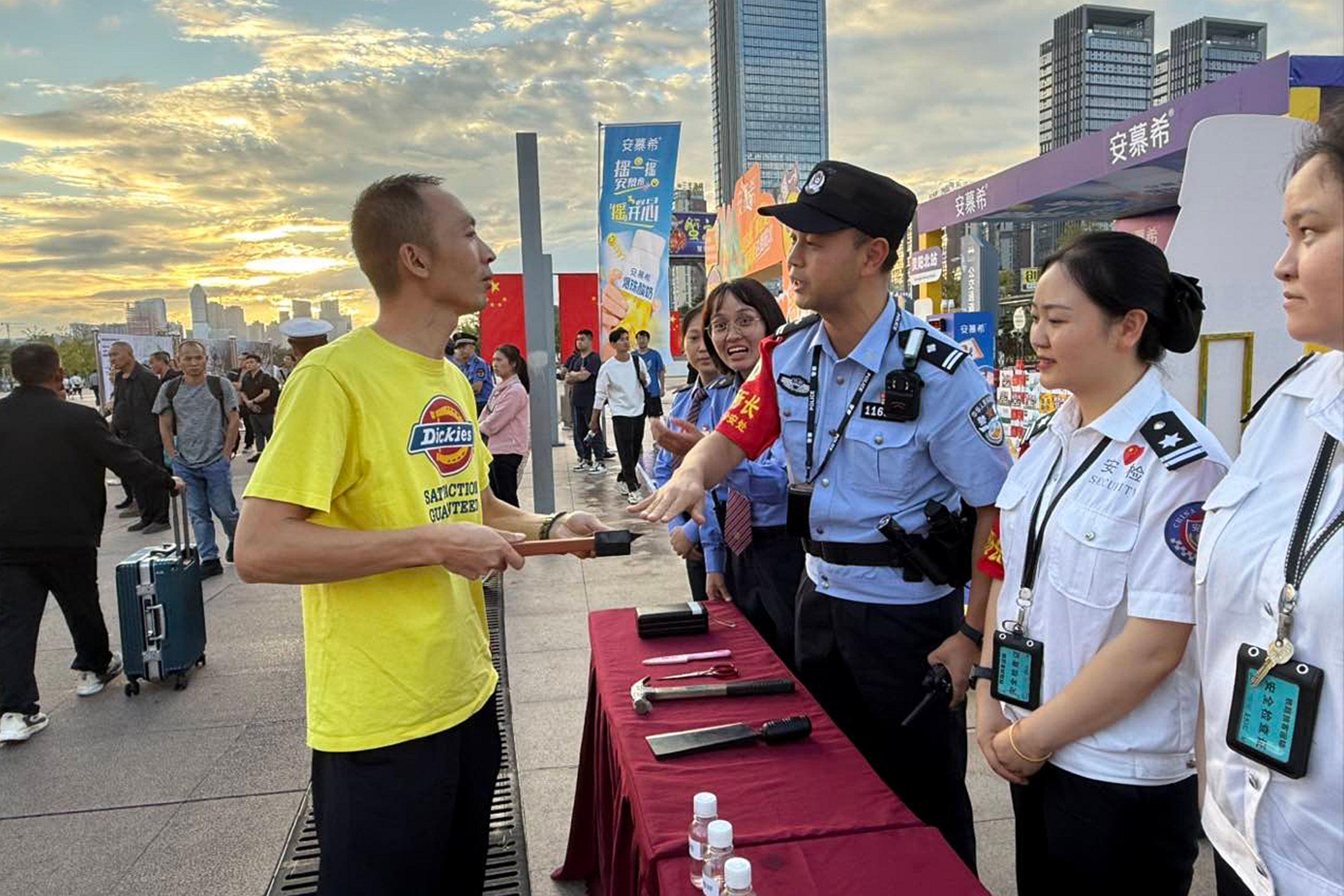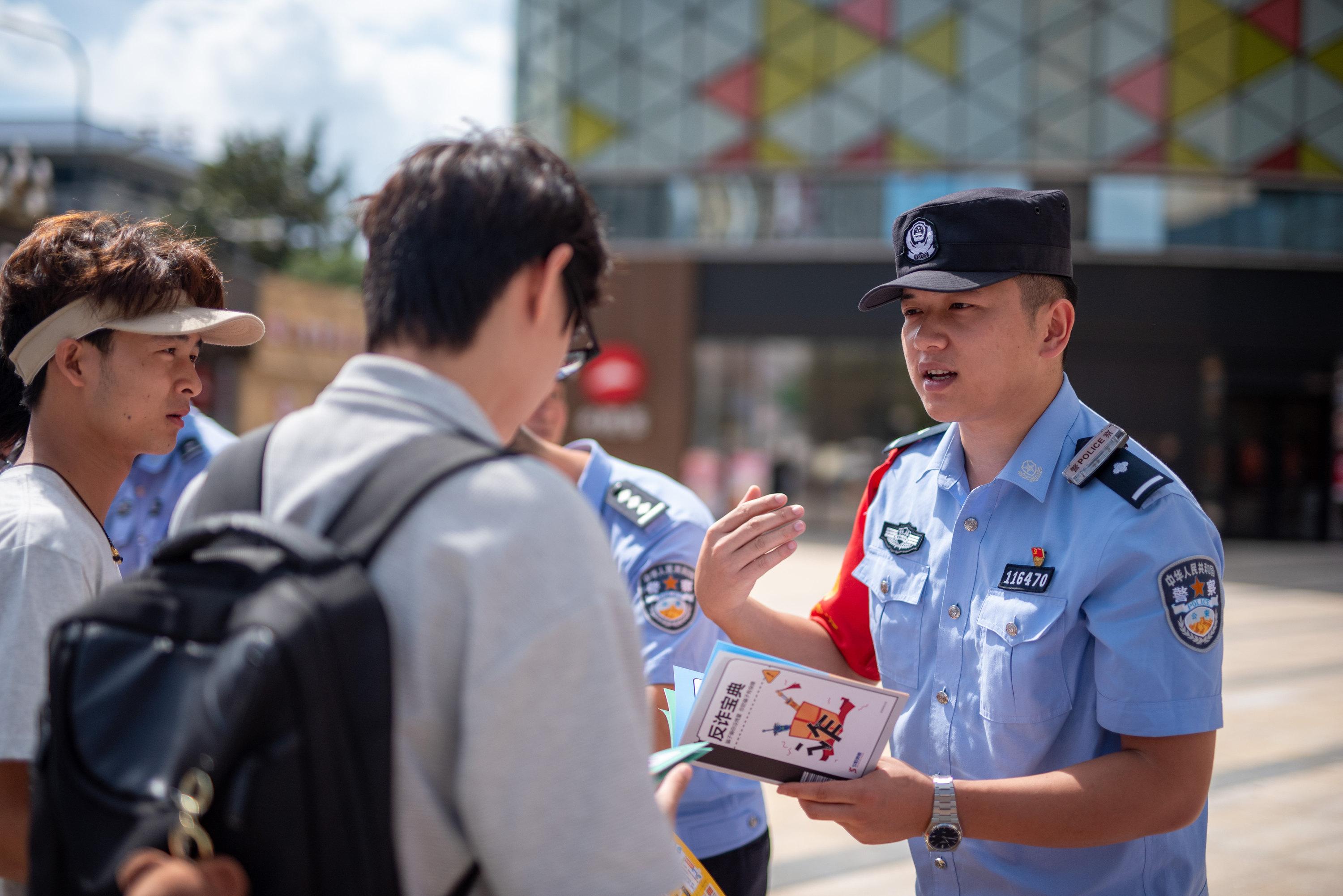 圖為貴陽北站派出所民警向旅客講解鐵路安檢規(guī)定。
