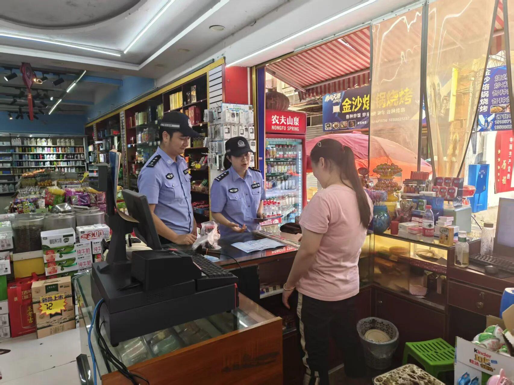 圖為民警對(duì)商戶(hù)進(jìn)行反詐知識(shí)宣傳。