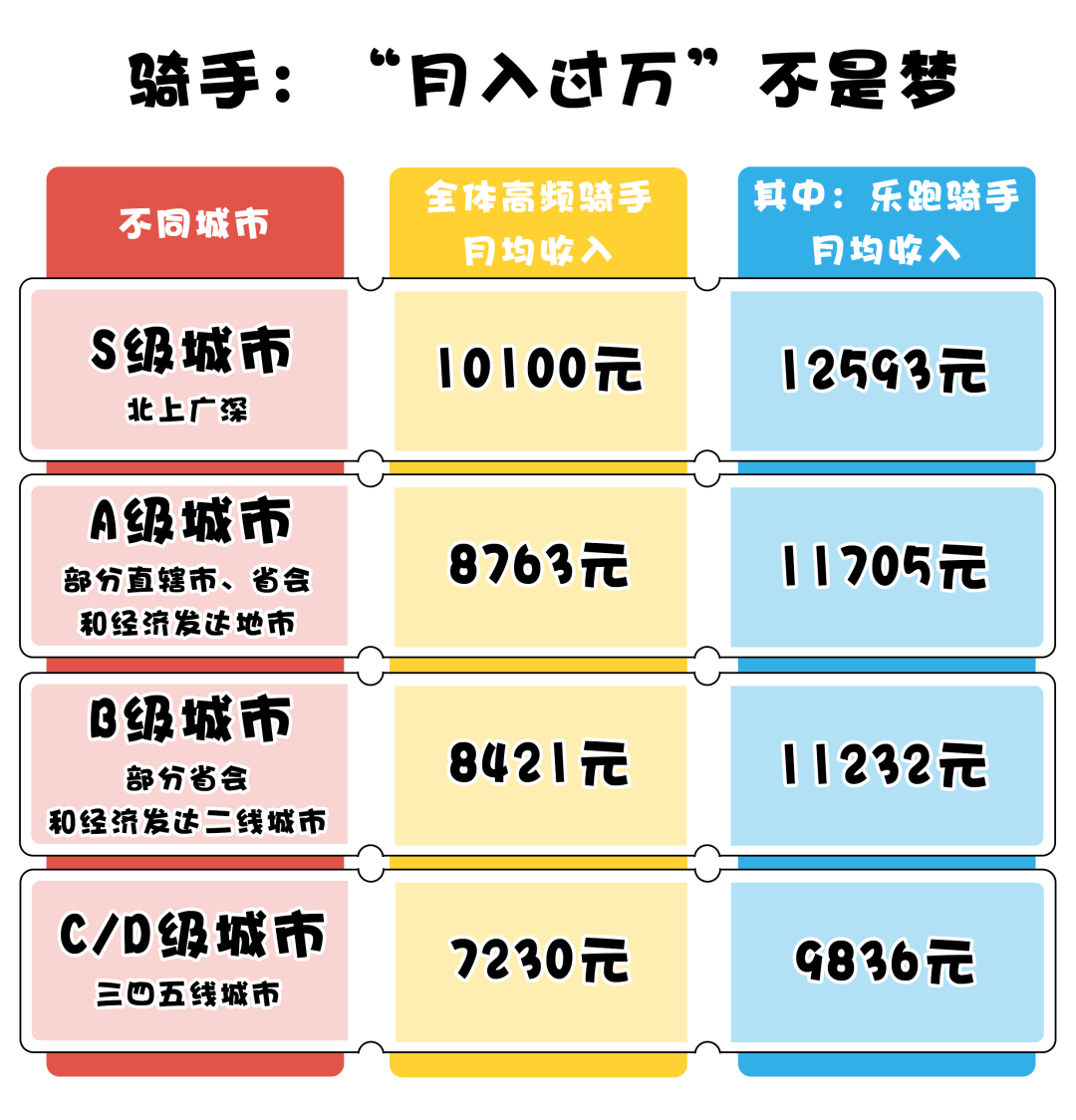 某外賣平臺(tái)2025年第一季度財(cái)報(bào)數(shù)據(jù)顯示,全國高頻騎手月均收入?yún)^(qū)間為7230元至10100元。在北上廣深等城市,技能更熟練的樂跑騎手收入優(yōu)勢更為明顯,月均可達(dá)12593元。