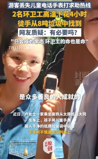 7月13日,“翻垃圾找兒童手表被質(zhì)疑浪費人力”話題沖上微博熱搜第一。引發(fā)爭議后,大同市城管局副局長回應(yīng)稱,此前也有過幫市民尋找失物的先例,此次并非特殊個例,“只要老百姓有需求,我們肯定去做”。該言論再次激發(fā)網(wǎng)民不滿。多數(shù)網(wǎng)民認為“有求必應(yīng)”也要區(qū)分輕重緩急。同時,圍繞游客身份衍生出特權(quán)猜測,有網(wǎng)民爆料其為“深圳市寶安區(qū)人民法院政治部主任盧某”“深圳紀委干部”,對此涉事法院緊急辟謠。主流媒體圍繞公共服務(wù)邊界問題進行探討,如《大河報》刊文指出,當(dāng)個別需求輕易撬動巨大公共力量時,公共資源或?qū)⒚媾R被無度索取的危機;央廣網(wǎng)認為,相關(guān)管理部門應(yīng)建立更科學(xué)的價值評估體系,在滿足民眾需求與資源優(yōu)化間找到平衡。
