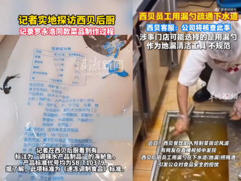 9月12日起,中國藍(lán)新聞、百姓315等多家媒體紛紛實(shí)地直播探訪各地西貝門店,先后曝出西貝門店后廚使用電磁爐而無明火灶;餐品原材料使用多種保質(zhì)期數(shù)月以上的冷凍食材,包括用于制作兒童餐的“速凍西藍(lán)花”、生產(chǎn)自2024年9月的“凍羊腿”、含食品添加劑的“凍海鱸魚”;部分餐品使用轉(zhuǎn)基因大豆油等后廚情況。此外媒體直播還顯示,西貝員工疑似使用廚具漏勺打撈疏通下水道。