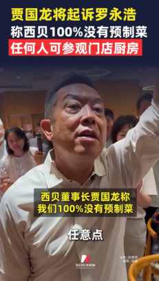 9月11日晚間,西貝餐飲集團(tuán)召開媒體溝通會(huì)的內(nèi)容在網(wǎng)絡(luò)流出,創(chuàng)始人賈國龍稱“預(yù)制菜國家有嚴(yán)格定義,西貝門店沒有一道是預(yù)制菜”,認(rèn)為羅永浩損害品牌商譽(yù),“一定會(huì)就此起訴”。同時(shí)表示西貝將推出“羅永浩同款菜單”,全國所有門店后廚對(duì)外開放參觀。羅永浩對(duì)此回應(yīng),“能把現(xiàn)做的菜做得全是重新加熱的味道,肯定是高科技”,表態(tài)已準(zhǔn)備好應(yīng)訴。
