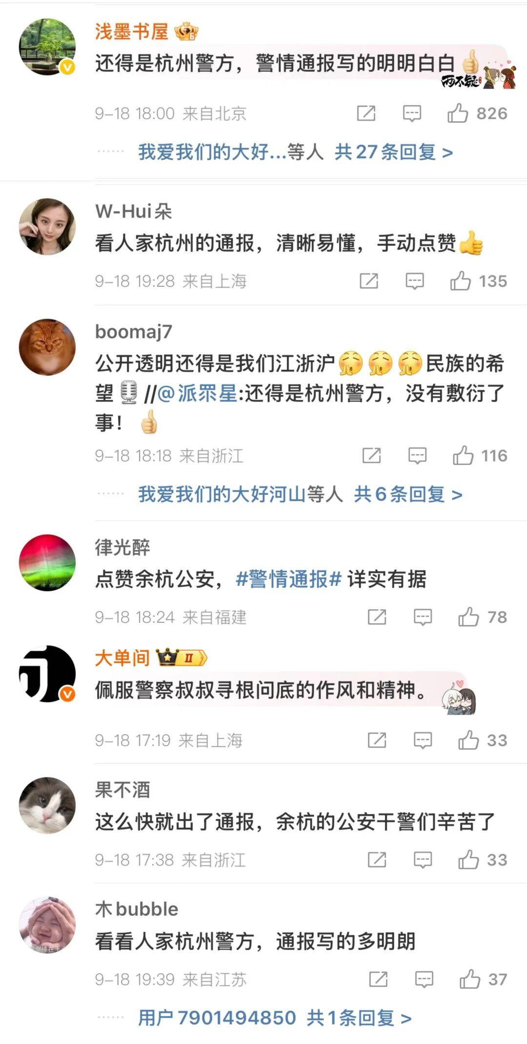 輿論認(rèn)可警方高效的調(diào)查,如網(wǎng)民“@啊妮貝貝-”評(píng)論道,遺棄十年還能查到,杭州公安真不錯(cuò);“@teacherwu09”稱這都能抓住,向警方致敬。對(duì)于警情通報(bào),大V“@淺墨書屋”稱贊警情通報(bào)寫得清清楚楚,明明白白。網(wǎng)民“@W-Hui朵”評(píng)價(jià)通報(bào)清晰易懂,“@律光醉”稱警情通報(bào)詳實(shí)有據(jù),具有說(shuō)服力。