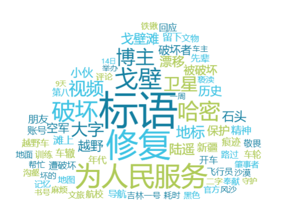2025年9月12日,博主“略靠譜旅社”發(fā)布一則視頻,講述哈密戈壁灘內(nèi)“為人民服務(wù)”標(biāo)語(yǔ)的歷史和現(xiàn)狀。視頻發(fā)布后,網(wǎng)民除了積極表達(dá)愛(ài)國(guó)熱情外,還關(guān)注到了標(biāo)語(yǔ)周邊幾個(gè)惹眼的巨大“圓圈”,追問(wèn)是如何造成的。有網(wǎng)民表示是越野車愛(ài)好者造成的破壞。10月10日,“略靠譜旅社”再度發(fā)布一則視頻,講述其修復(fù)被破壞標(biāo)語(yǔ)的全過(guò)程,并對(duì)相關(guān)越野人士表達(dá)譴責(zé)。該博主贏得了網(wǎng)民的認(rèn)可和支持,一些人開(kāi)始深扒破壞者身份。10月11日,“@蟹武大D”等網(wǎng)民貼出疑似破壞者的賬號(hào)“新疆平頭哥(旅游無(wú)人區(qū)私人定制)”。不少網(wǎng)網(wǎng)民譴責(zé)破壞行為,要求當(dāng)?shù)赜嘘P(guān)部門(mén)查處相關(guān)責(zé)任人。當(dāng)晚,“新疆平頭哥(旅游無(wú)人區(qū)私人定制)”發(fā)聲否認(rèn)此事,并稱將去修復(fù)標(biāo)語(yǔ)。不少網(wǎng)民堅(jiān)持認(rèn)為標(biāo)語(yǔ)是遭其破壞,呼吁警方介入。
