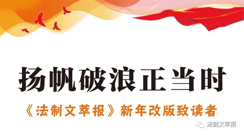 “百年機(jī)會(huì)真難遇,一線光陰更易流?!薄斗ㄖ莆妮蛨?bào)》的改版和創(chuàng)新,是順應(yīng)新時(shí)代的召喚,更是凝心聚力的整裝再出發(fā)。《法制文萃報(bào)》將抓住機(jī)遇、乘勢(shì)而上,擔(dān)當(dāng)使命、揚(yáng)帆破浪,與廣大讀者一道,書寫新篇章、創(chuàng)造新輝煌!