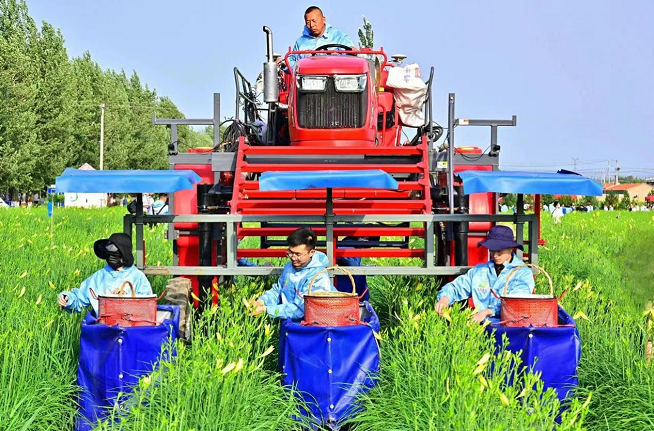 有人帶頭種,還有機器來輔助?!?021年,機器進行了幾次試驗,如今,可以下地試運行了?!鄙轿鬓r(nóng)業(yè)大學(xué)教授鄭德聰說,懸掛式黃花菜輔助采收機將進一步降低人工勞動強度,提高采收效率。