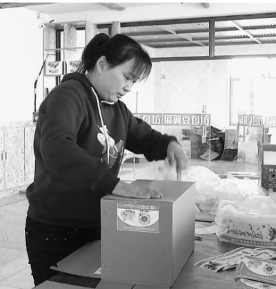 2016年冬,齊曉景看到農(nóng)戶家中積累了大量笨雞蛋,一些村民還在不停地制作黏豆包、凍豆腐等當(dāng)?shù)靥厣称罚射N量有限。齊曉景想到年關(guān)在即,許多單位和城市家庭對實(shí)用又精美的禮品有很大需求,于是,她馬上組織人員訂制了一批精美禮盒,收購村民家里自產(chǎn)的笨雞蛋、黏豆包、凍豆腐等產(chǎn)品,將它們組合成“農(nóng)家味道大禮包”,在網(wǎng)上平臺銷售,顧客紛紛下單,產(chǎn)品很快銷售一空。