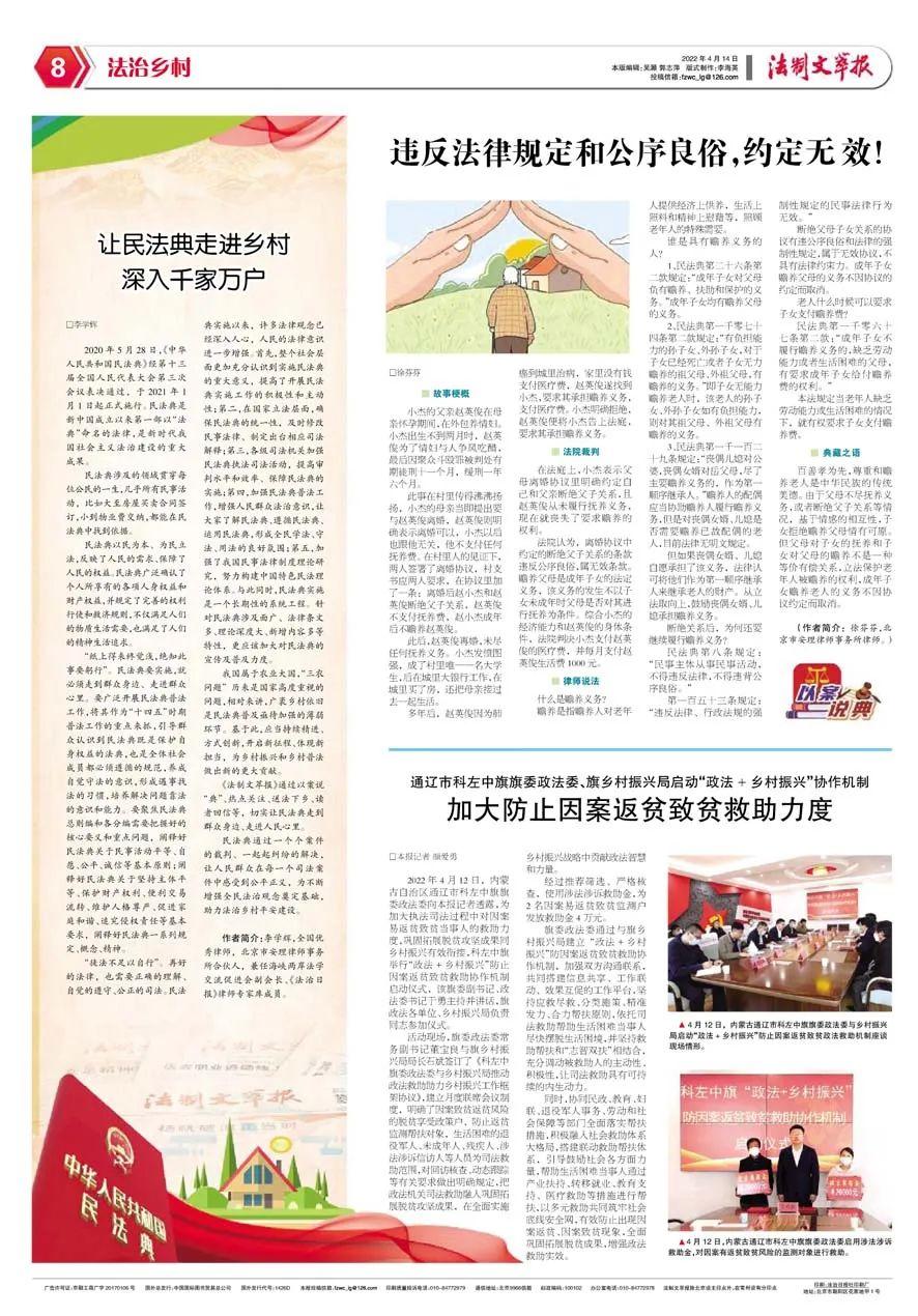 《法制文萃報》通過以案說“典”、熱點關(guān)注、送法下鄉(xiāng)、讀者回信等,切實讓民法典走到群眾身邊、走進人民心里。