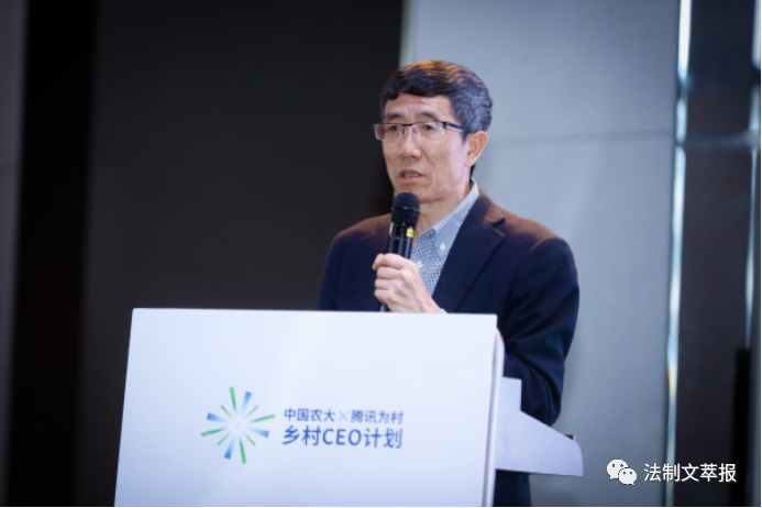 圖為中國(guó)農(nóng)業(yè)大學(xué)文科講席教授李小云,在介紹中國(guó)農(nóng)大-騰訊為村鄉(xiāng)村CEO計(jì)劃。
