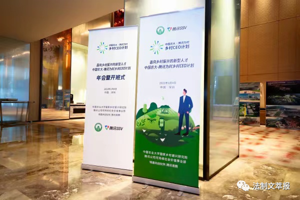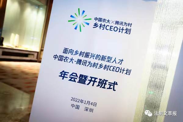 2022年1月4日,中國(guó)農(nóng)大-騰訊為村鄉(xiāng)村CEO計(jì)劃在深圳開(kāi)班,來(lái)自全國(guó)10個(gè)省市、20個(gè)地市州的50余名參加鄉(xiāng)村職業(yè)經(jīng)理人培訓(xùn)的學(xué)員將在此接受集中培訓(xùn)。