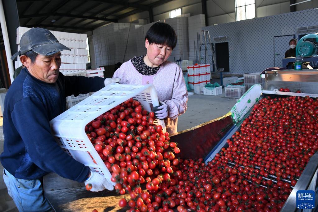 4月1日,菜農在棗莊市臺兒莊區(qū)馬蘭屯鎮(zhèn)按揭農業(yè)基地分選包裝西紅柿。記者 范長國 攝