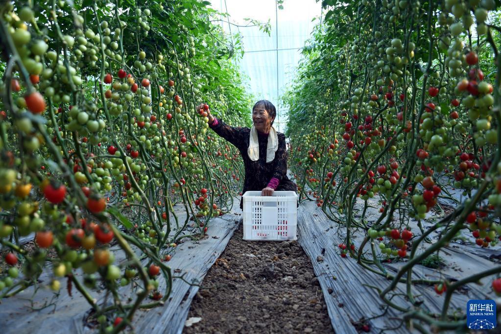 4月1日,菜農在棗莊市臺兒莊區(qū)馬蘭屯鎮(zhèn)按揭農業(yè)基地采摘西紅柿。記者 范長國 攝