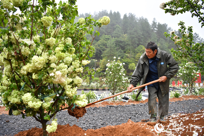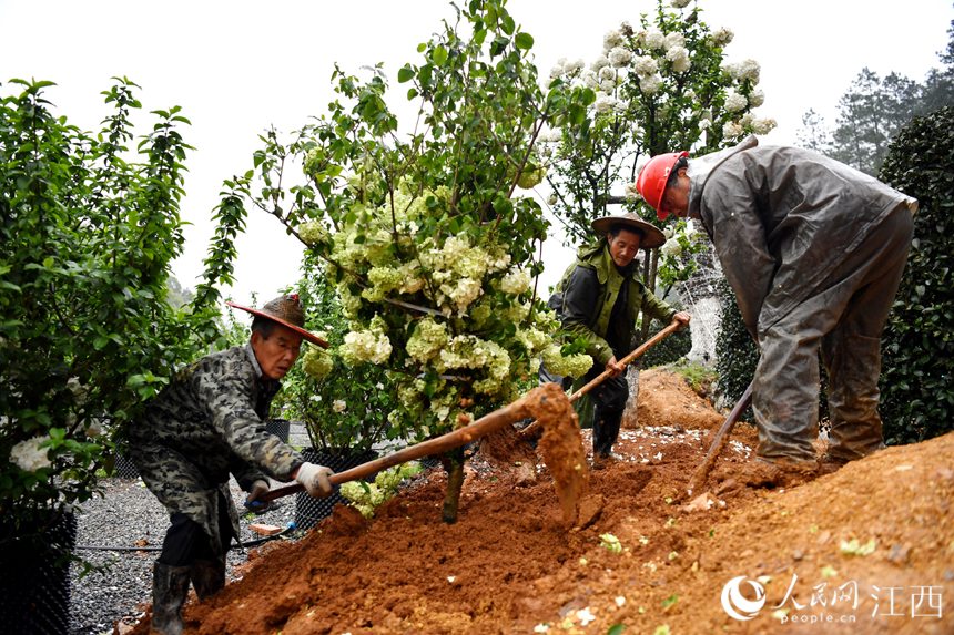 博覽園內(nèi),村民們正在栽種木繡球樹(shù)。時(shí)雨 攝