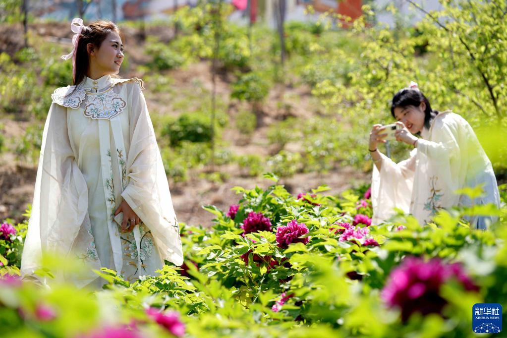 4月16日,游客在白臺峪村牡丹農業(yè)產業(yè)園拍照游玩。記者 駱學峰 攝