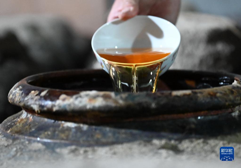 4月20日,屏南縣代溪鎮(zhèn)北墘村村民展示自己釀的黃酒。記者 林善傳 攝