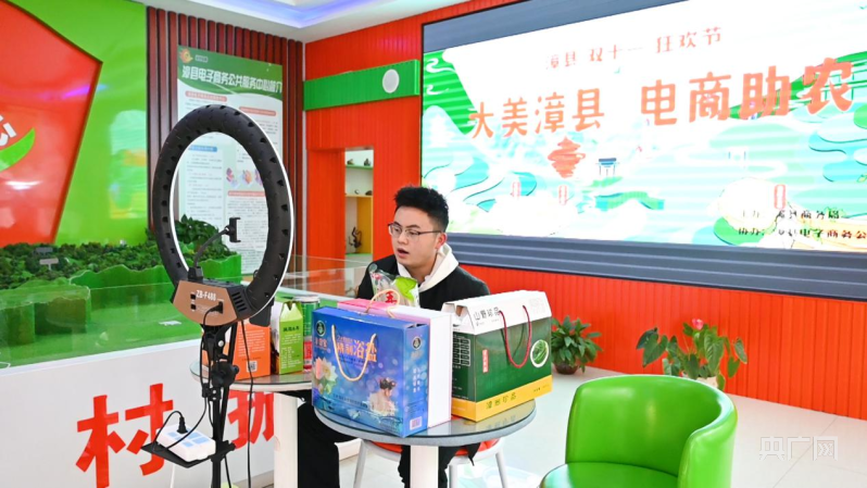 漳縣電子商務(wù)公共服務(wù)中心直播賣貨現(xiàn)場(漳縣融媒體中心供圖)