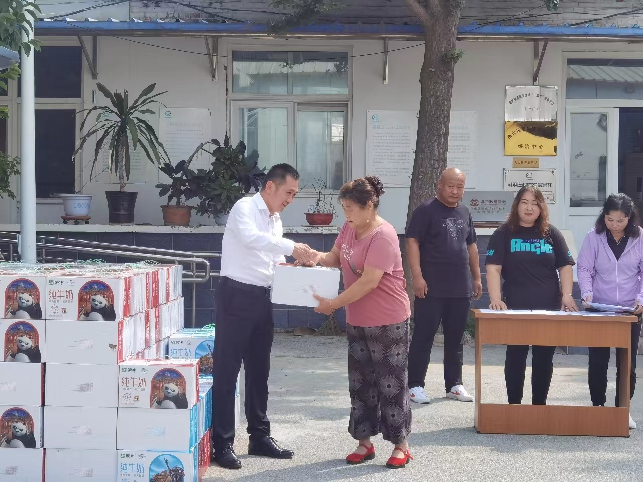 在前不久北京遭遇的特大暴雨災(zāi)害中,房山區(qū)共有11個(gè)鄉(xiāng)鎮(zhèn)遭遇斷水、斷電、斷路、斷網(wǎng)的情況。300多個(gè)村莊、社區(qū)受災(zāi),造成了較大的經(jīng)濟(jì)損失,嚴(yán)重影響了民眾的生產(chǎn)生活。劉平莊村是房山區(qū)竇店鎮(zhèn)南端海拔最低的村莊,地處低洼地帶,遭受了雨水侵襲和洪水倒灌雙重災(zāi)害,村民房屋被浸泡,農(nóng)田被淹導(dǎo)致絕收,減產(chǎn)嚴(yán)重。此次安理黨委利用黨建公益專項(xiàng)費(fèi)用“安理小基金”為村里60歲以上老人捐贈(zèng)了300箱蒙牛純牛奶,以實(shí)際行動(dòng)踐行社會(huì)責(zé)任。