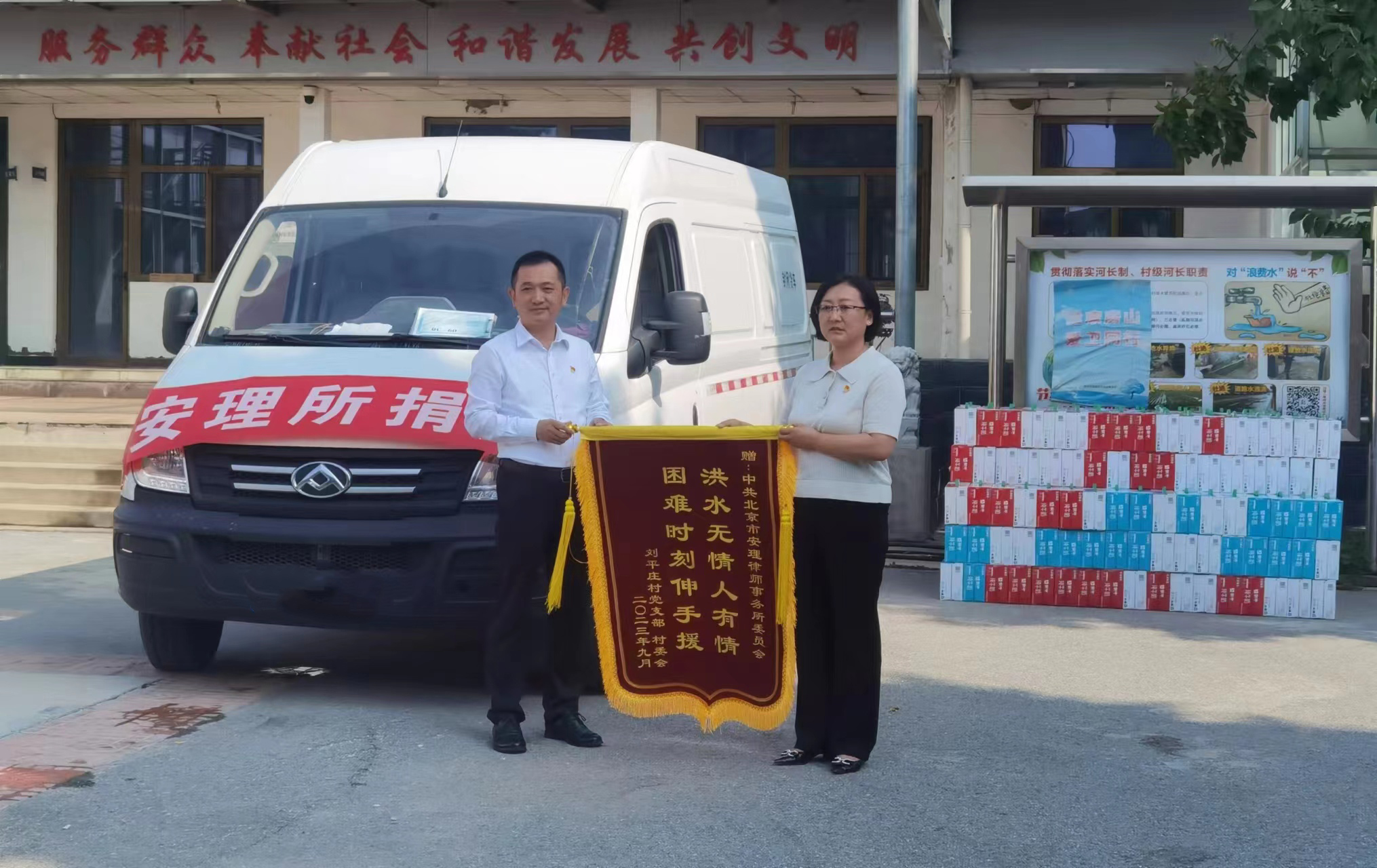 房山區(qū)司法局副局長(zhǎng)溫興善對(duì)安理黨委的愛(ài)心捐贈(zèng)表示衷心感謝。劉平莊村黨支部書(shū)記王春代表村兩委班子向安理黨委贈(zèng)送了“洪水無(wú)情人有情 困難時(shí)刻伸手援”的感謝錦旗,并詳細(xì)介紹了劉平莊村的歷史、文化、經(jīng)濟(jì)和鄉(xiāng)村振興等情況。安理律師事務(wù)所黨委副書(shū)記、管委會(huì)委員李學(xué)輝和黨委委員張大軍、楊博與村民進(jìn)行了深入交流,了解他們的生產(chǎn)生活,鼓勵(lì)受災(zāi)村民在黨委政府的領(lǐng)導(dǎo)下、在社會(huì)各界的共同幫扶下,他們一定會(huì)過(guò)上更加健康、平安、開(kāi)心的日子。