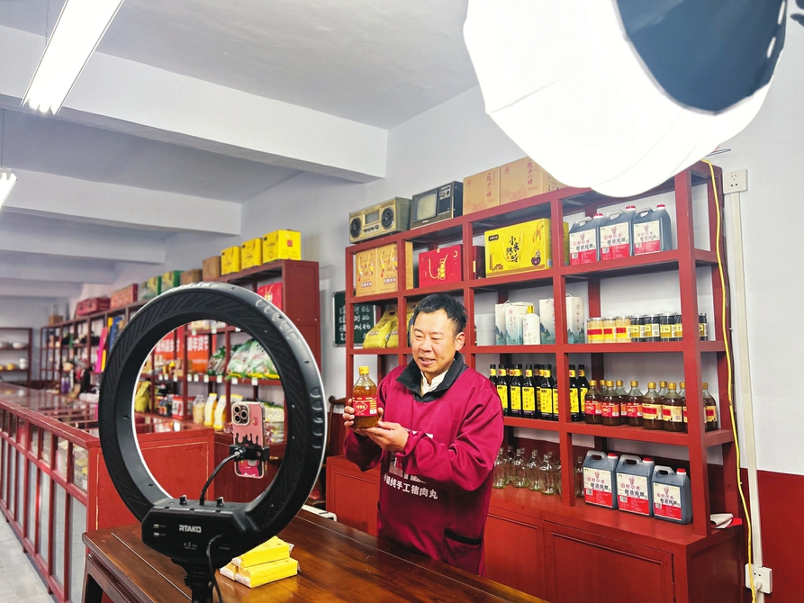 宋小朋在保福村供銷社里直播推介當?shù)剞r(nóng)產(chǎn)品 晉睿 攝