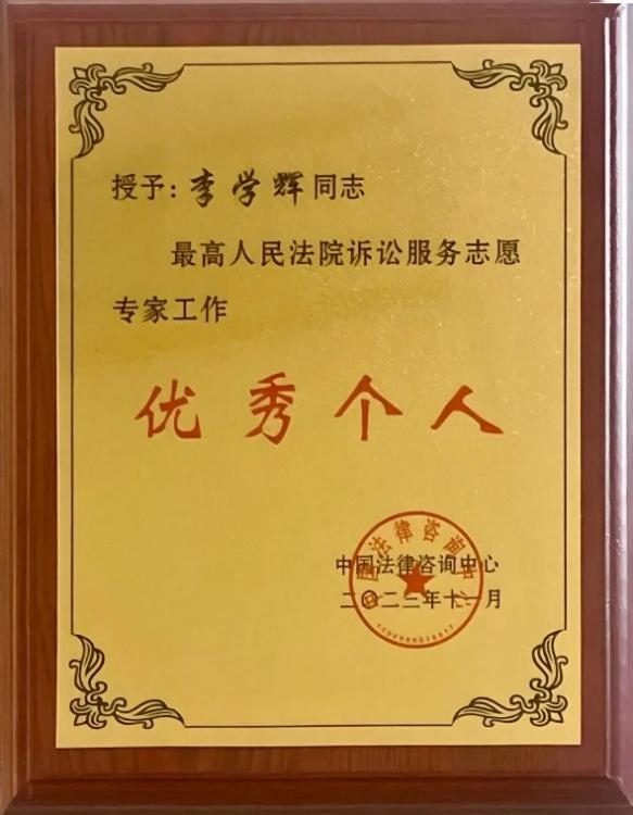 李學輝律師獲評“最高人民法院訴訟服務志愿專家工作優(yōu)秀個人”