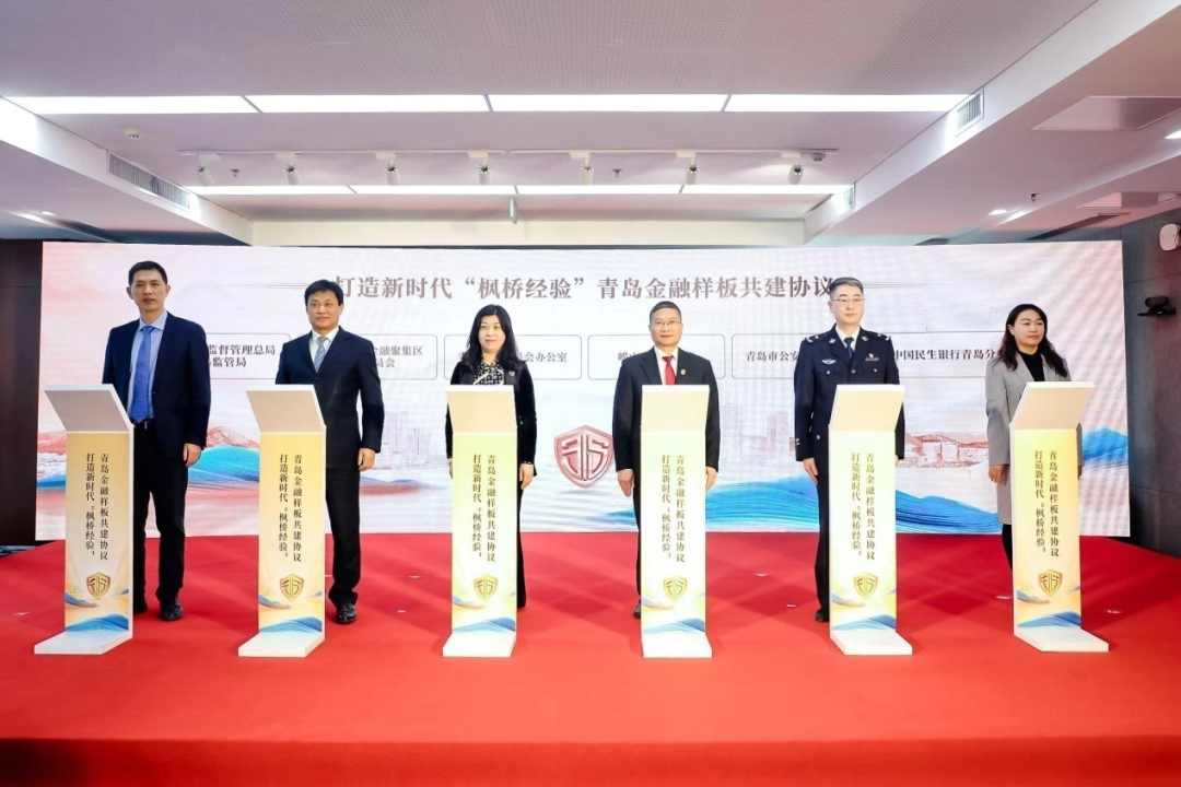 國家金融監(jiān)督管理總局青島監(jiān)管局、青島金家?guī)X金融聚集區(qū)管理委員會、青島仲裁委員會辦公室、嶗山區(qū)人民法院、嶗山公安分局、中國民生銀行股份有限公司青島分行共同簽訂《打造新時代“楓橋經(jīng)驗”青島樣板聯(lián)建共建協(xié)議》,國家金融監(jiān)督管理總局青島監(jiān)管局黨委書記、局長張忠寧與嶗山區(qū)人民法院黨組書記、院長張堅共同為嶗山區(qū)人民法院“金法E站”揭牌?!敖鸱‥站”是嶗山區(qū)人民法院為打造新時代“楓橋經(jīng)驗”青島金融樣板所進(jìn)行的積極實(shí)踐,其兼具訴源治理、訴前調(diào)解、法治宣傳、司法確認(rèn)等多項功能,是一體化、全功能的金融糾紛多元化解平臺。