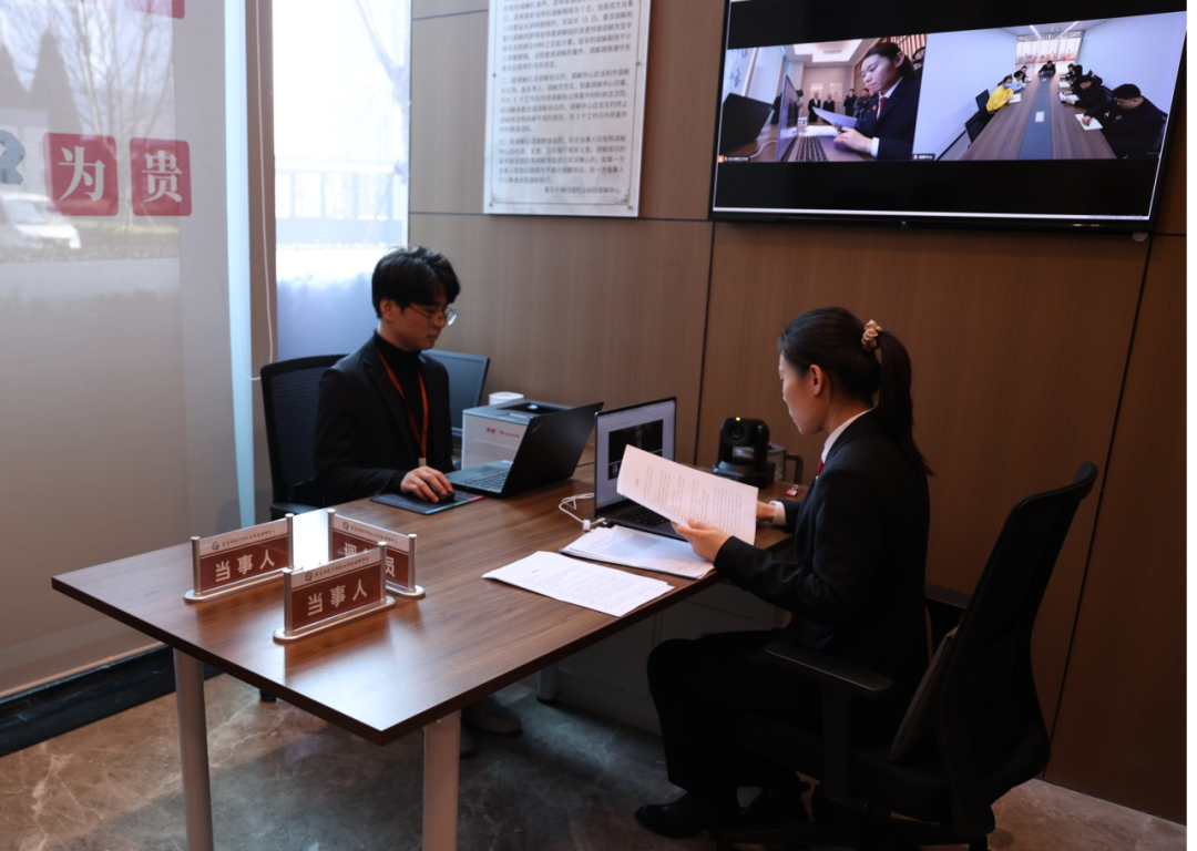 揭牌儀式后,共建單位參觀考察了“金法E站”運(yùn)行情況,并共同見證了一起金融糾紛的高效化解。調(diào)解人員通過“金法E站”調(diào)解平臺進(jìn)行線上調(diào)解,法官現(xiàn)場出具并送達(dá)司法確認(rèn)書,展現(xiàn)了高效、便捷、智能的金融糾紛化解新模式。