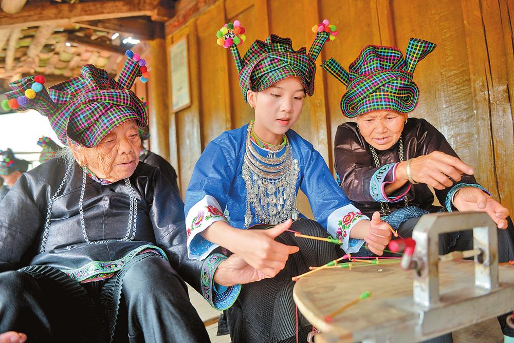 “者兔的很多壯族婦女都是靈巧的繡娘?!碑?dāng)?shù)亟Y(jié)合農(nóng)村留守婦女實(shí)際,通過技能培訓(xùn),推薦就近到加工作坊、合作社務(wù)工的方式聯(lián)農(nóng)帶農(nóng),實(shí)現(xiàn)壯族婦女坐在院里就能賺錢、養(yǎng)家、帶娃“三不誤”。截至目前,者兔鄉(xiāng)共有繡娘8700人,有壯族服飾制作、經(jīng)營的商鋪、加工作坊300余家。