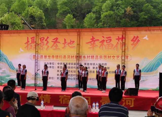 “歡聲笑語(yǔ)響山巔,相約云海里紅杜鵑,屋脊山上看家鄉(xiāng),杜鵑花開滿山崖……”下午三時(shí)許,當(dāng)?shù)?8名小學(xué)生組成的“小山雀合唱團(tuán)”演唱的一曲禮贊家鄉(xiāng)、飽含鄉(xiāng)情的《相約云海紅杜鵑》在攝影家村廣場(chǎng)回蕩,激揚(yáng)的旋律,嘹亮的歌聲,贏得現(xiàn)場(chǎng)觀眾雷鳴般掌聲。這里,正在舉辦一場(chǎng)春意盎然的文化盛宴——單龍寺鎮(zhèn)掃帚河村和美鄉(xiāng)村精品示范村文藝匯演,這也是該縣今年舉辦的第四場(chǎng)精品示范村群眾性文藝演出。