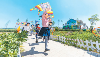 孩子們?cè)诮K省泗洪縣石集鄉(xiāng)柳山新居“小菜園”放風(fēng)箏 張連華 攝