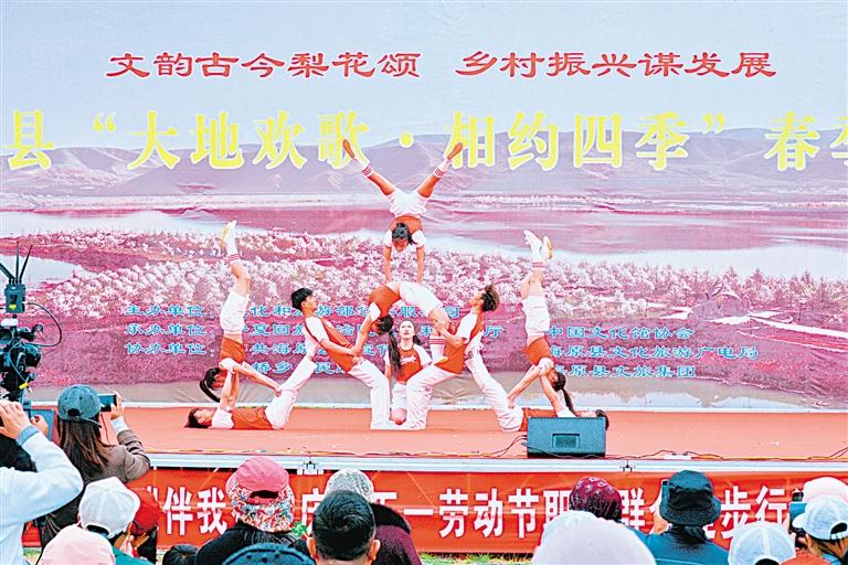 4月19日至21日,由文化和旅游部公共服務(wù)司主辦、自治區(qū)文化和旅游廳及中國文化館協(xié)會承辦、海原縣協(xié)辦的“大地歡歌·相約四季”春季村晚成果展示活動,在該縣關(guān)橋鄉(xiāng)方堡村梨花小鎮(zhèn)火熱舉辦。繁花綻放的數(shù)千畝百年梨園中,歌舞、魔術(shù)、戲曲、雜技等文藝表演輪番上陣、亮點紛呈;海原特色牛雜、燒烤、章魚小丸子、烤馕、手抓餅、肉夾饃、手工洋芋擦擦等鄉(xiāng)味濃郁的特色美食讓人回味無窮。剪紙、刺繡等非遺國潮集市人頭攢動,漢服游園者絡(luò)繹不絕,“璀璨梨園”篝火晚會更是讓游客流連忘返。